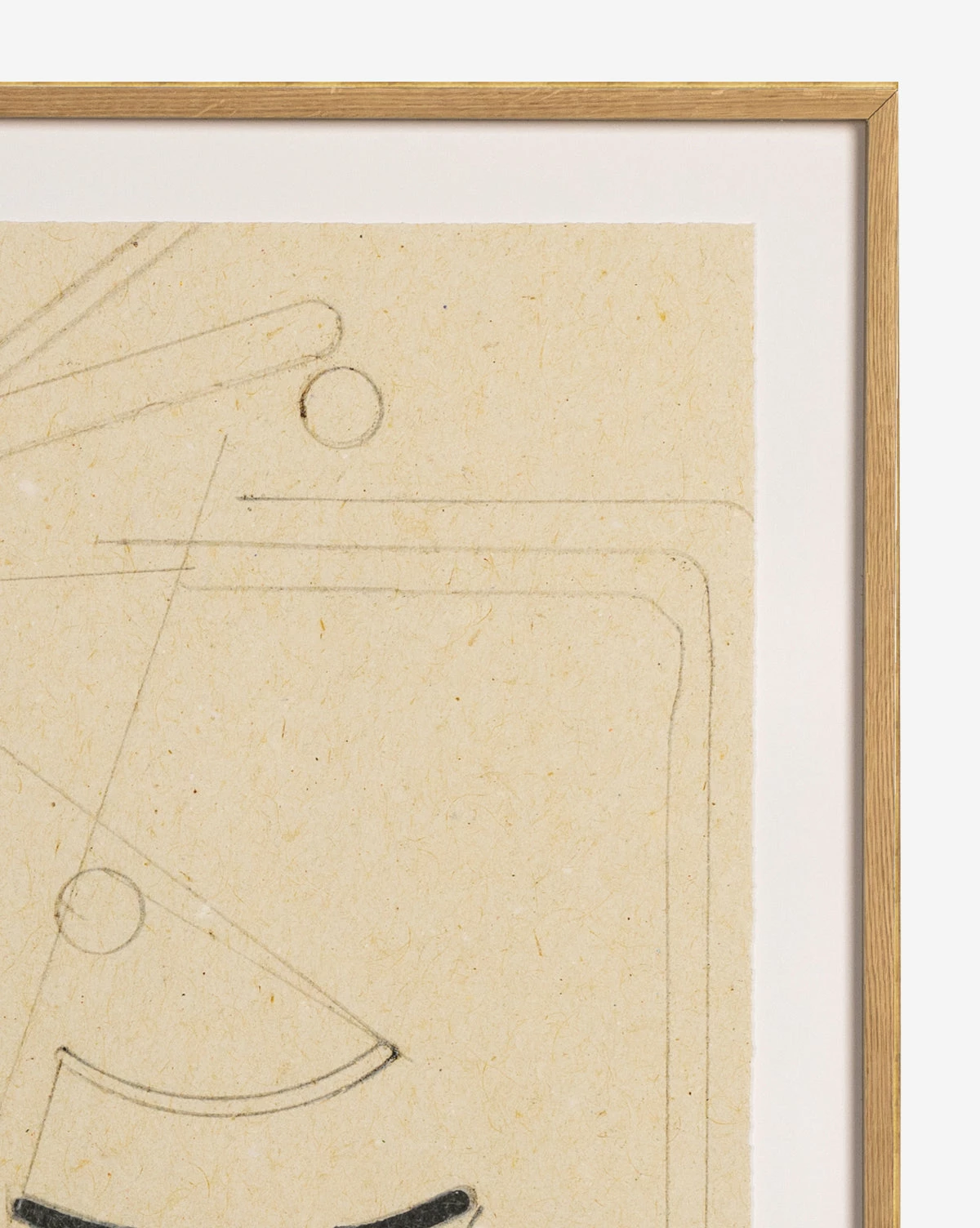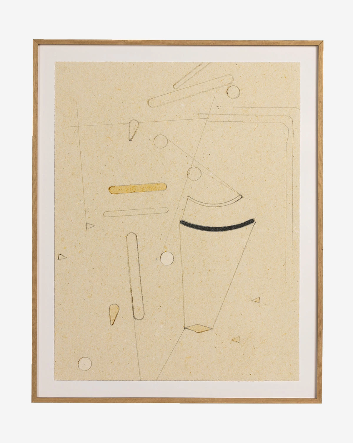 Composed of abstract shapes and strokes within a neutral palette, Abstract Angles is inspired by artist Dan Hobday’s hometown landscapes in Devon, England. Printed on fine art paper with a deckled edge and a white oak frame, the artwork brings a gallery-quality to your spaces.