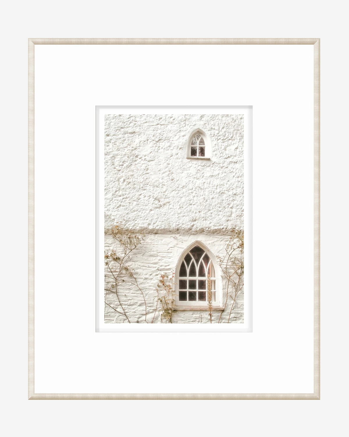 Displaying a serene white building exterior, Arched Windows brings unique beauty to your home through its photographic composition. Presented on premium matt paper within a bronze-finished wood frame, the piece adds a gallery-quality look to your space.
