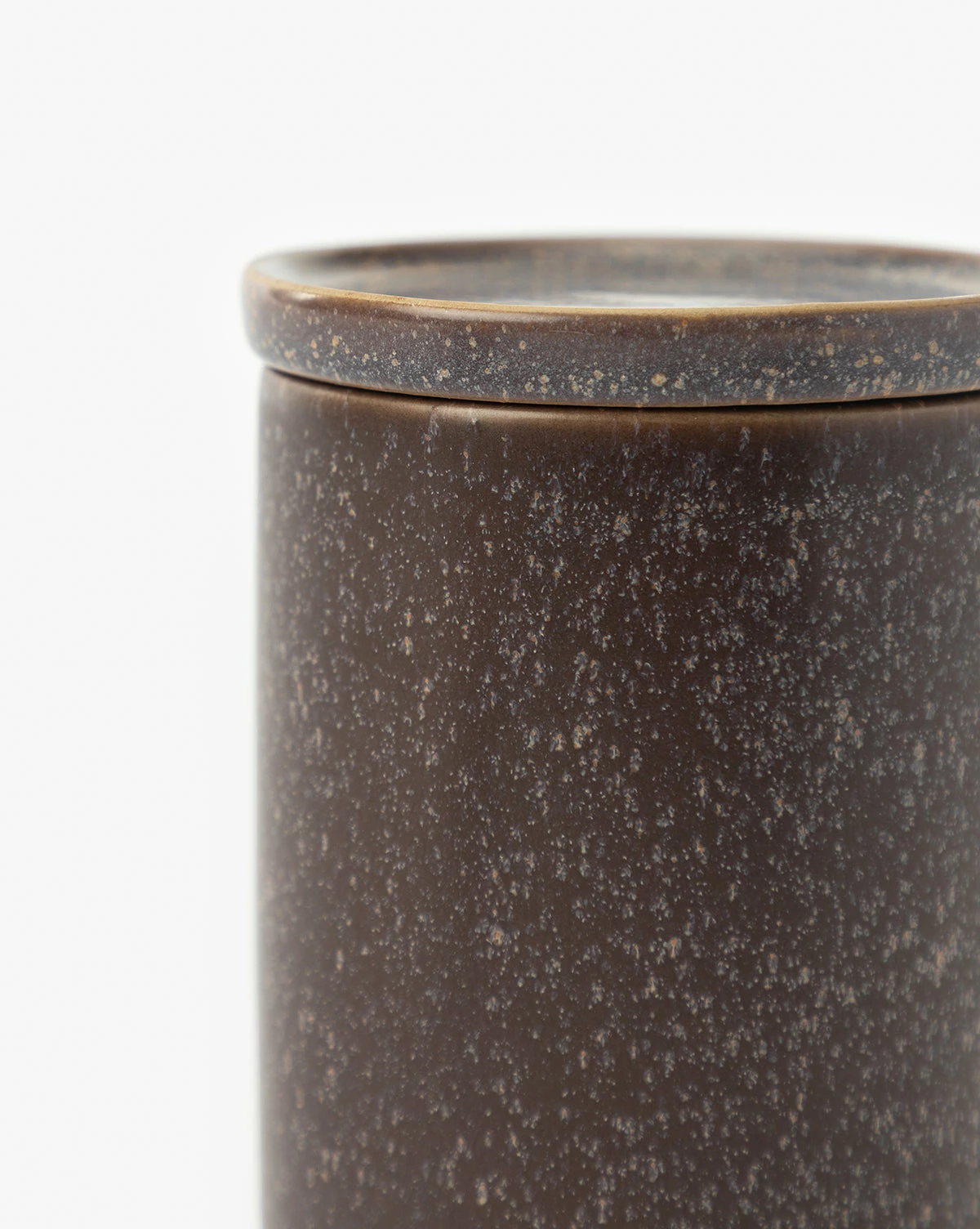 Modern design meets vintage style in the Brom Stoneware Canister. Finished with a speckled reactive glaze in either a tan or brown hue, this canister is versatile and elegant. Whether used practically in the kitchen or simply styled on shelving, the piece adds subtle interest to your space.