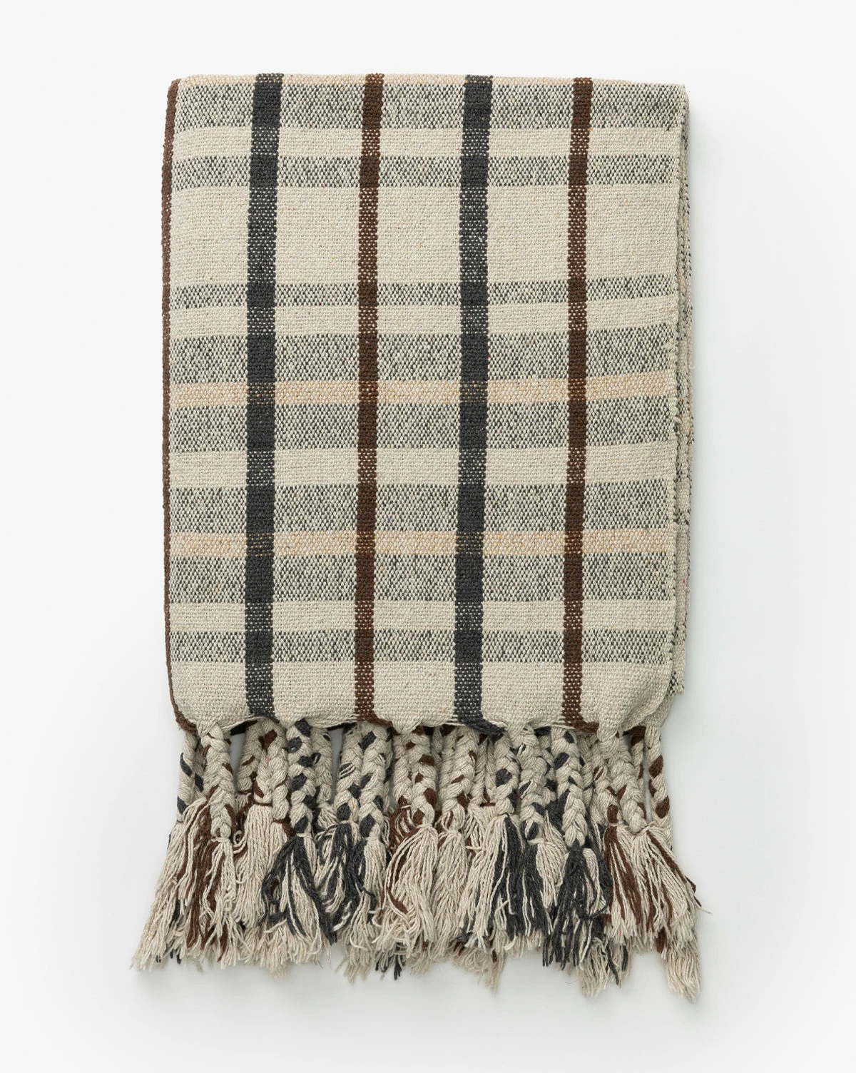 Woven in a classic plaid pattern, the Plaid Tasseled Throw adds depth to your textiles with its warm hues and inviting design. The motif itself is structured and allows the eyes to rest, while the braided tassels add lived-in playfulness to your style.