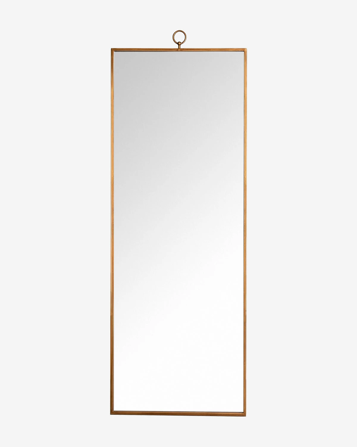 With an antique gold finished frame, the Cleda Floor Mirror lends timeless detail to your space. Its decorative detail at the top of the frame brings an element of classic design to your decor, while its simple construction allows for easy styling wherever it is placed.