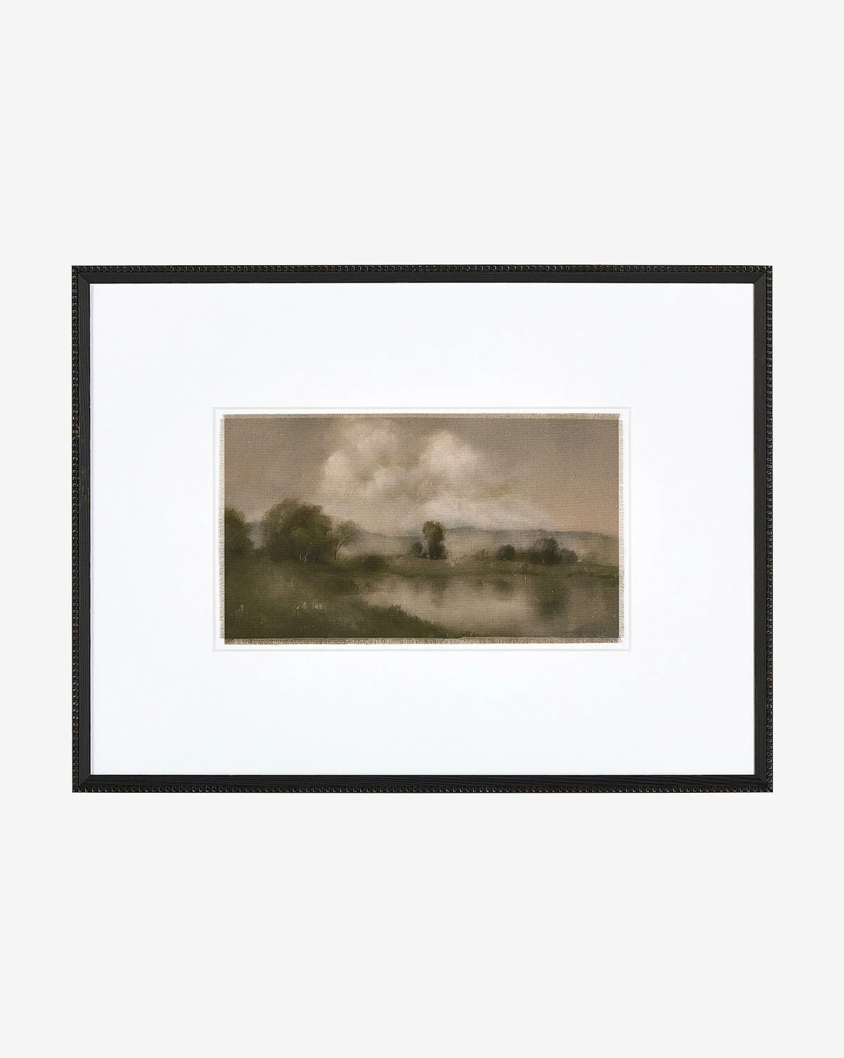 A vintage-inspired lakeside scene comes to life with each detail in Cloud Reflection. The museum-quality piece is a giclee print on raw canvas within a wood frame. An ethereal composition by Hannah Winters, the landscape adds intriguing beauty to your space.