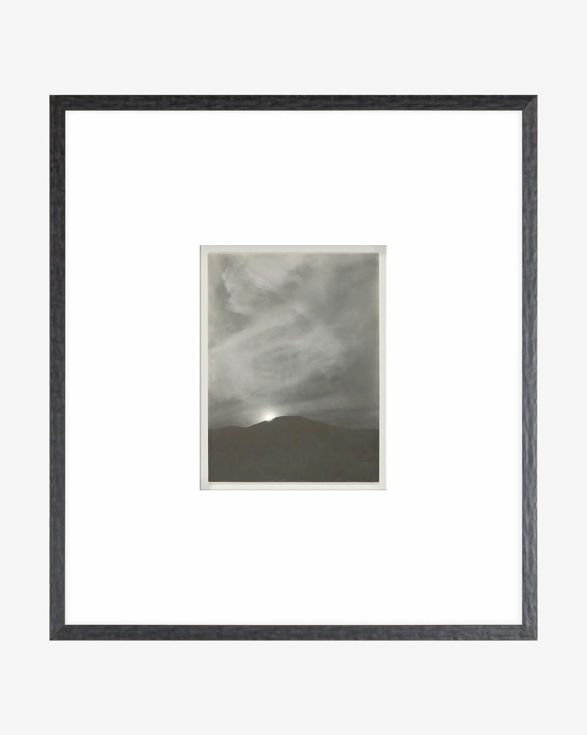 Capturing the majesty of clouds in the night sky, this black and white photograph by Alfred Stieglitz uses contrast and warm tones to evoke a feeling of grandeur and nostalgia. Finished in a rippled black wood frame and encased in premium glass, this piece brings museum-quality artwork into your home.