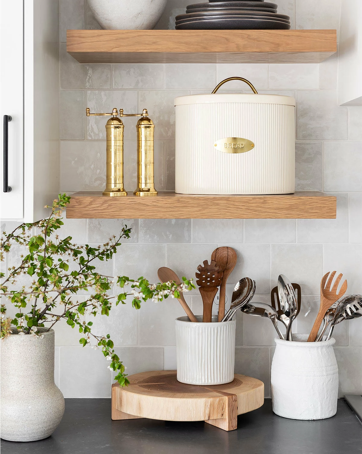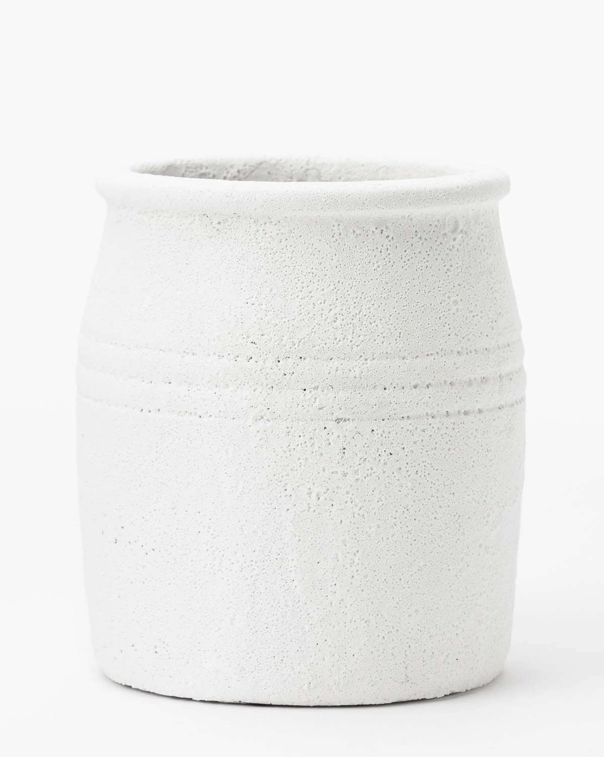 Our Distressed Chalk Glaze Crock draws the eye with antique-inspired details. From the subtle 3 lined detail, to the rounded rim, its imperfect terracotta form brings depth and dimension while holding all your everyday kitchen tools.