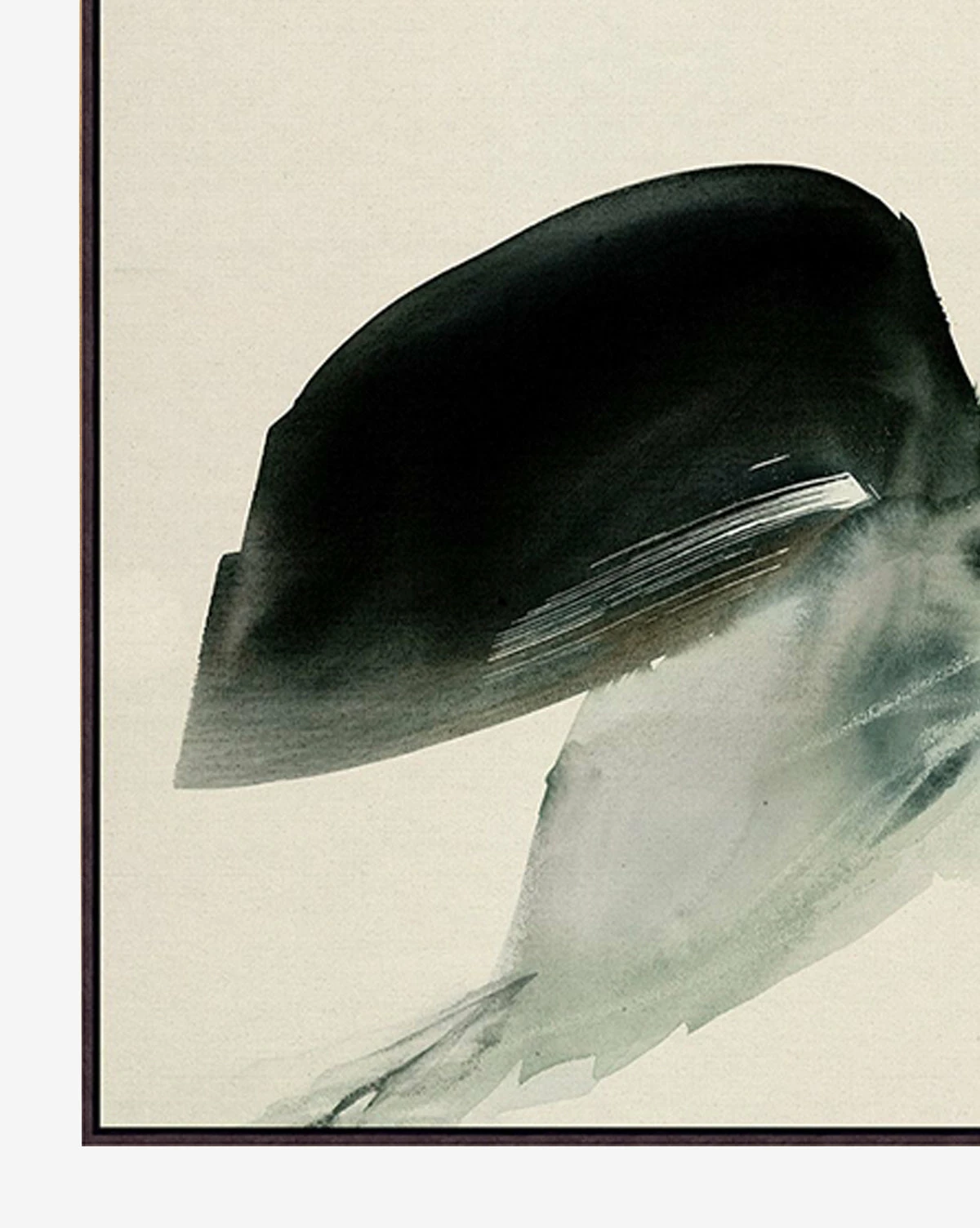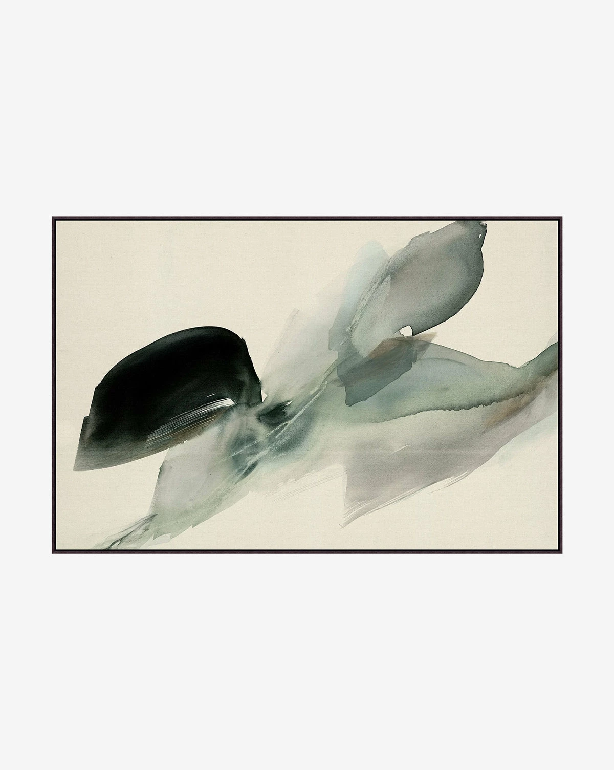 Abstract and full of contrast, Easy Embrace is a giclee print on raw canvas, depicting emotive movement with its intentional composition. In a wood floater frame with an espresso finish, this piece brings a gallery-quality to your space.