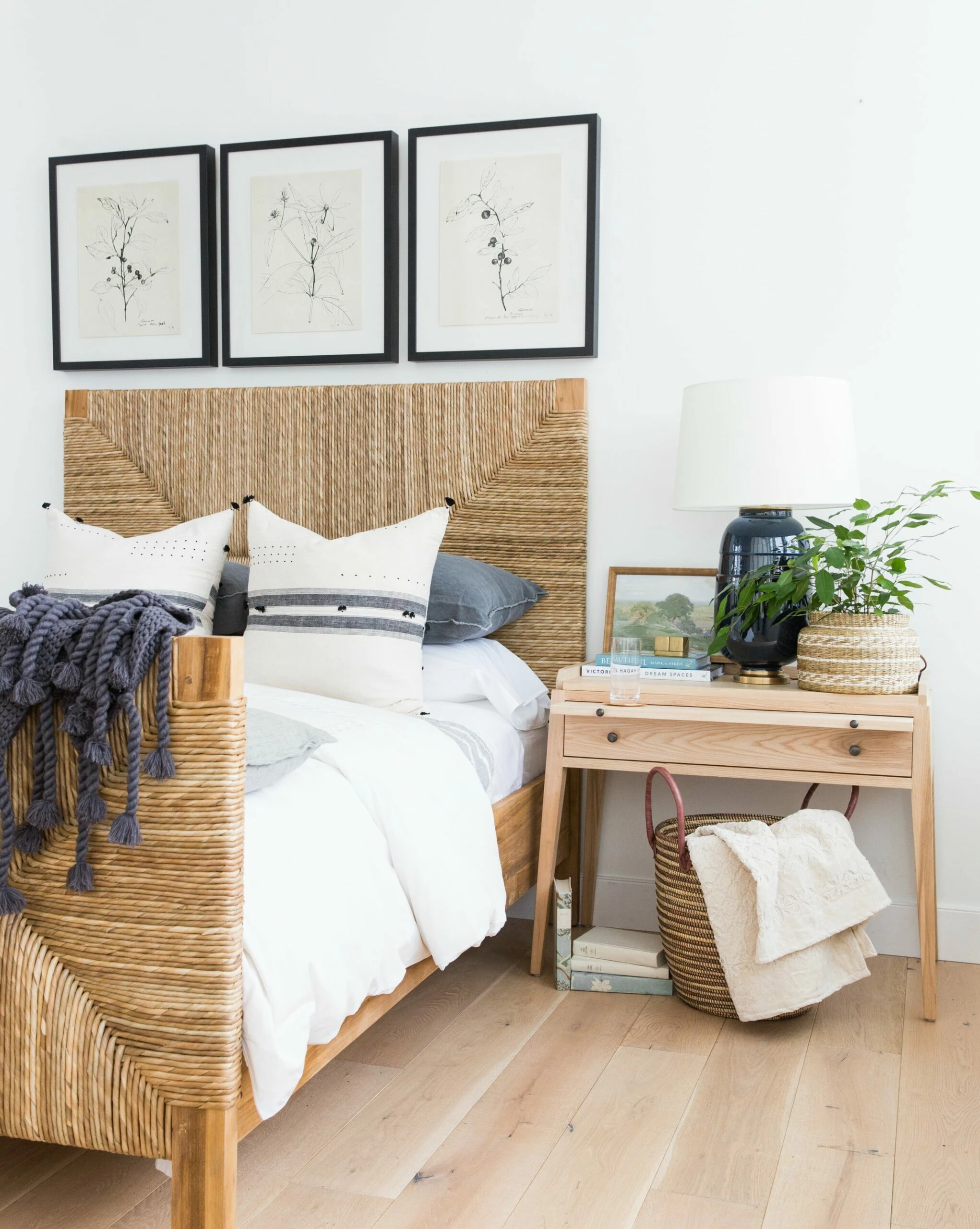 In putting together our exclusive artwork collection, we knew we wanted a classic set of botanical prints. With fine line work and a vintage color palette, our Floral Study collection alludes to an artist’s cherished sketchbook. Whether styled alone or grouped together, they’re an easy way to bring interest and a natural aesthetic to a space.