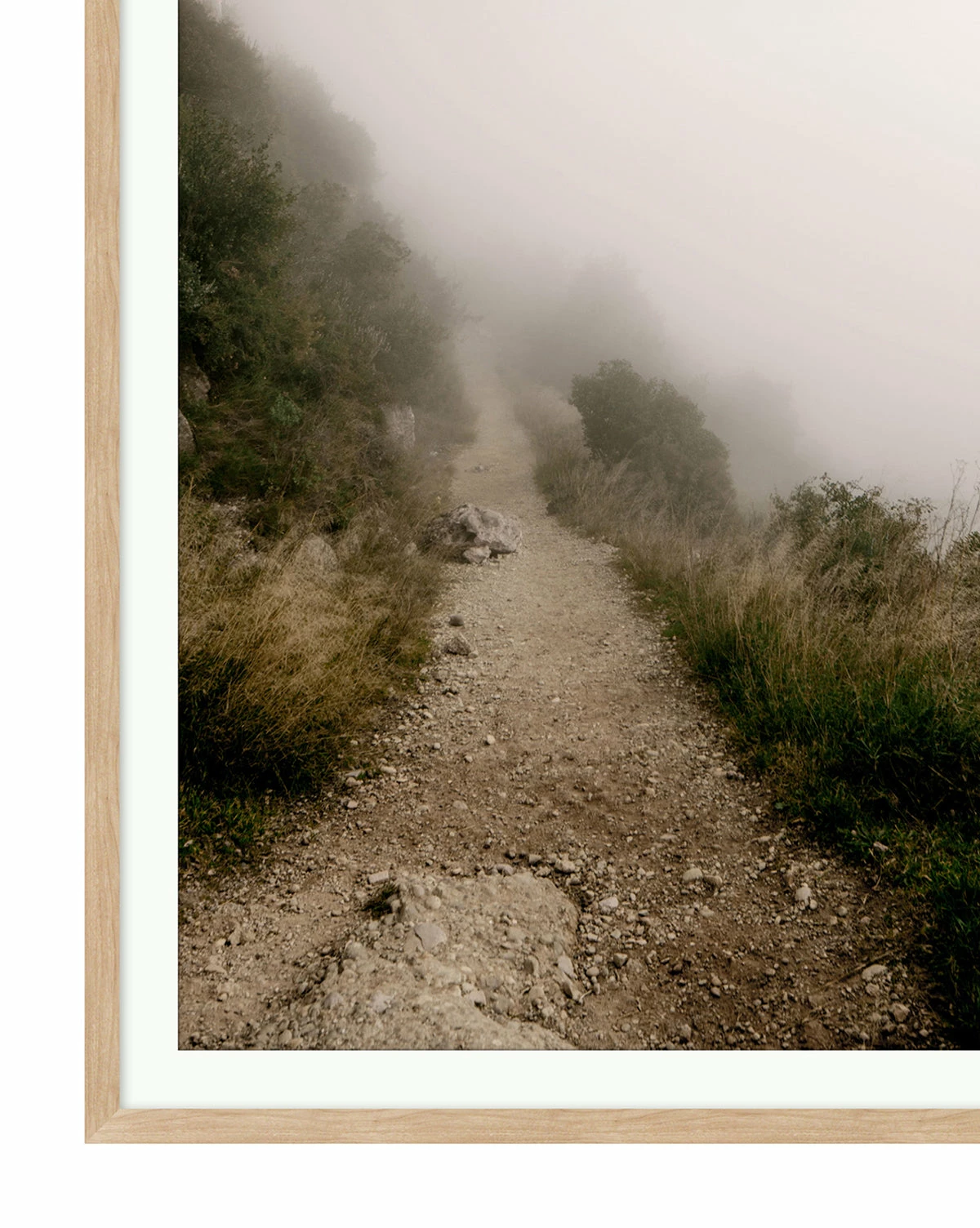 In an ethereal depiction of a misty walking path, Foggy Path is giclee printed on paper and produced with museum-quality materials. The piece is printed in a medium scale, and lends contemplative realism and warmth to your space.