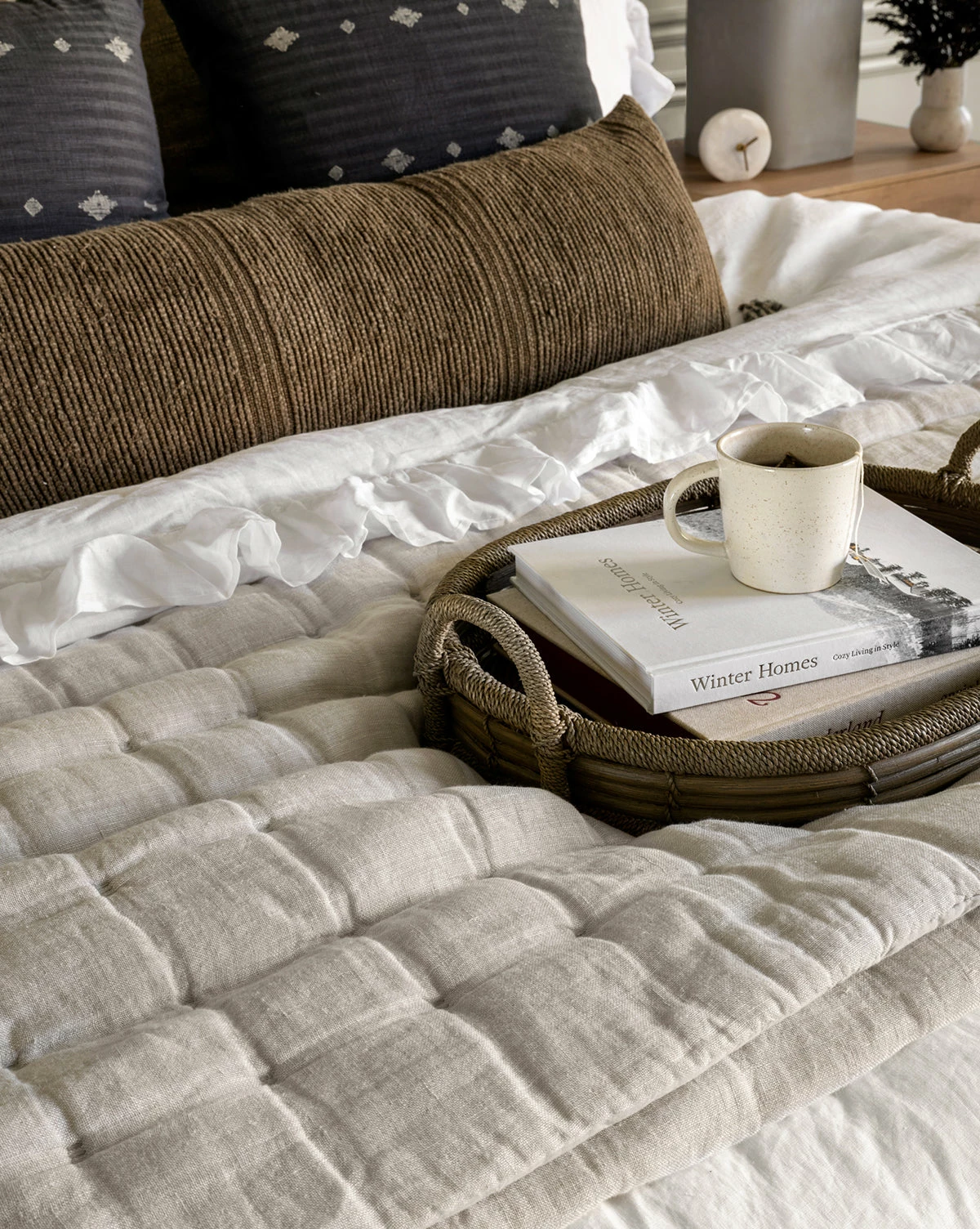 Graywash Wicker Tray