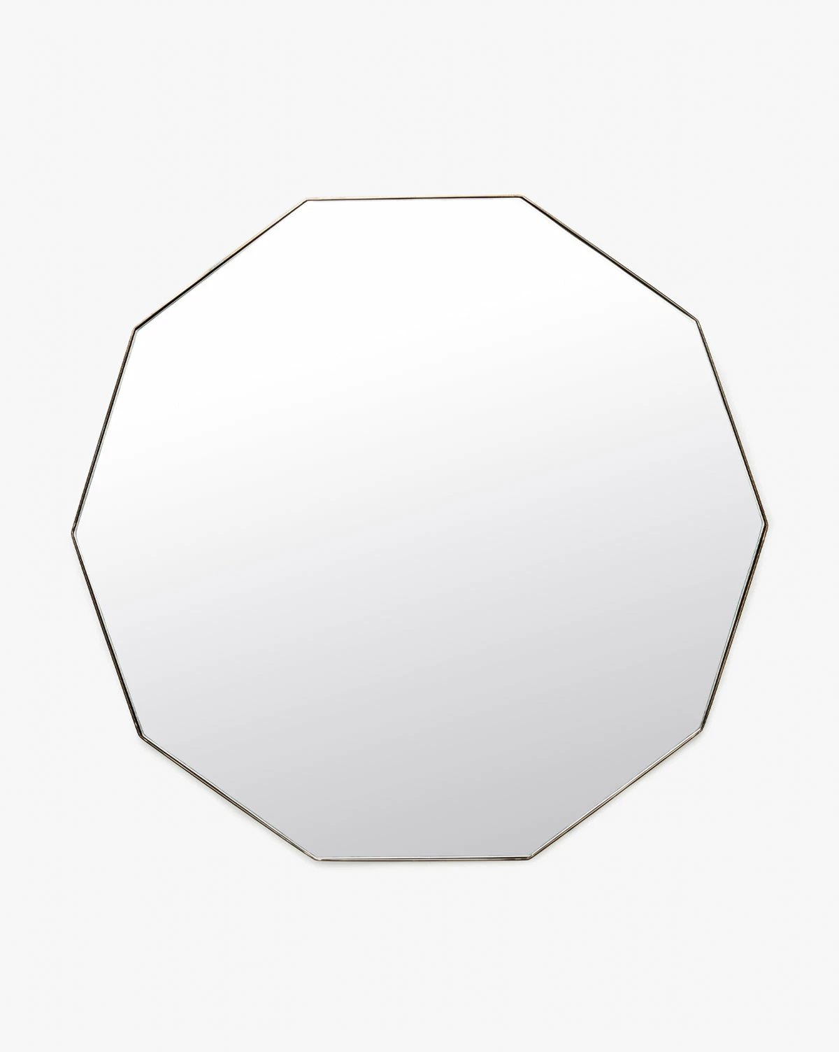 Shapely and modern, our Hawley Decagon Mirror makes a subtle statement in any room. An inset mirror with a burnished brass or black finish on its stainless steel border, this wall mirror creates beautiful dimension in your space.