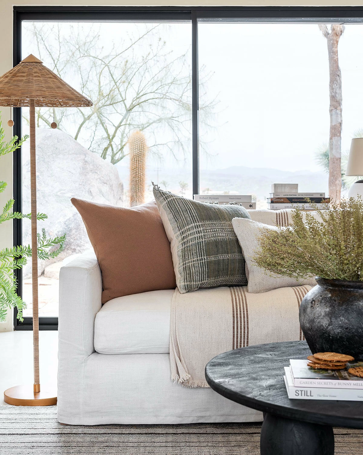 Hand-loomed using rustic hand-spun cotton and refined cotton twine, the Helena Soft Fringe Camel & Cream Blanket is created from an incredibly lightweight and soft fabric. With a striped motif, this blanket is perfect for layering during the colder months, or for use on its own during summer.