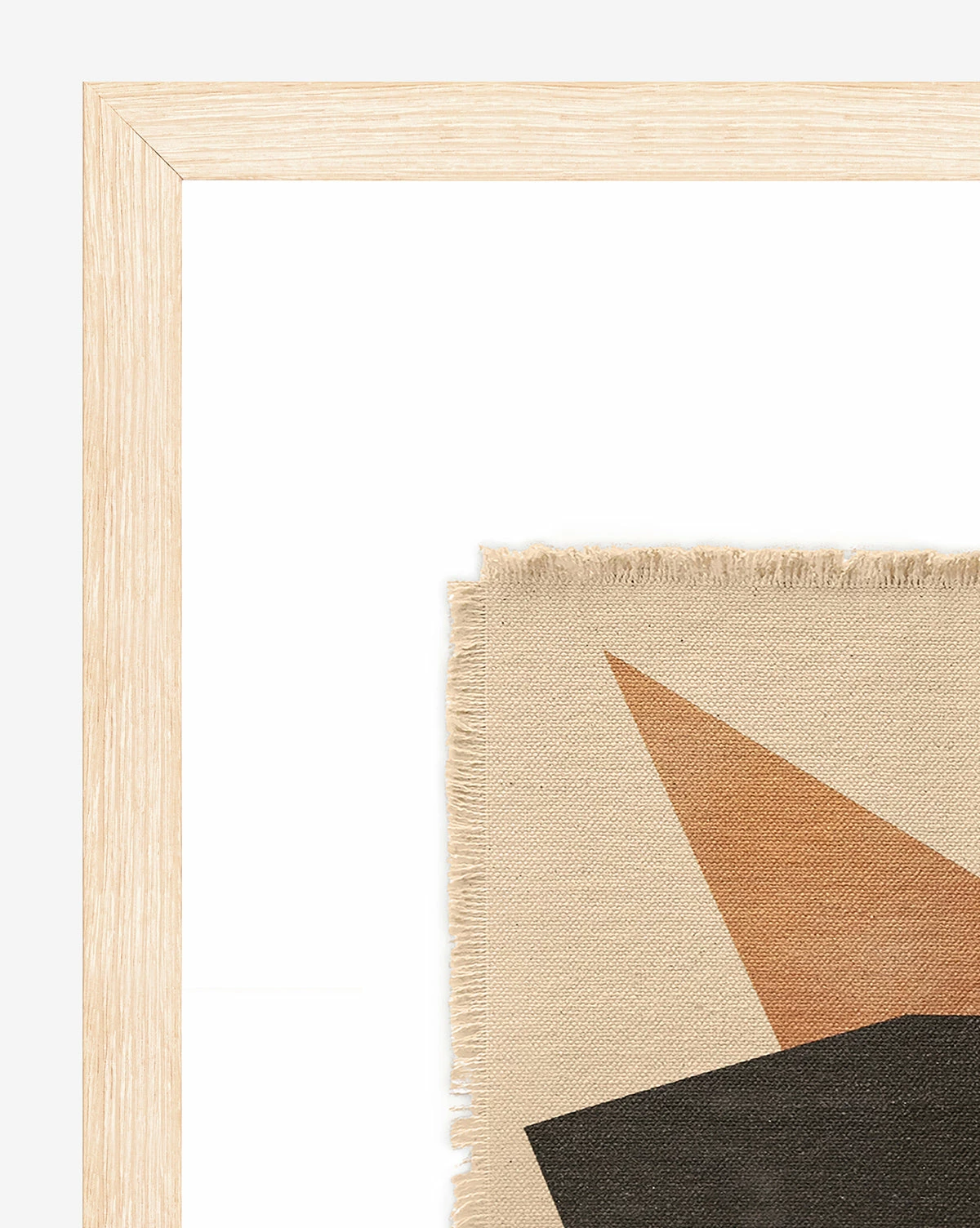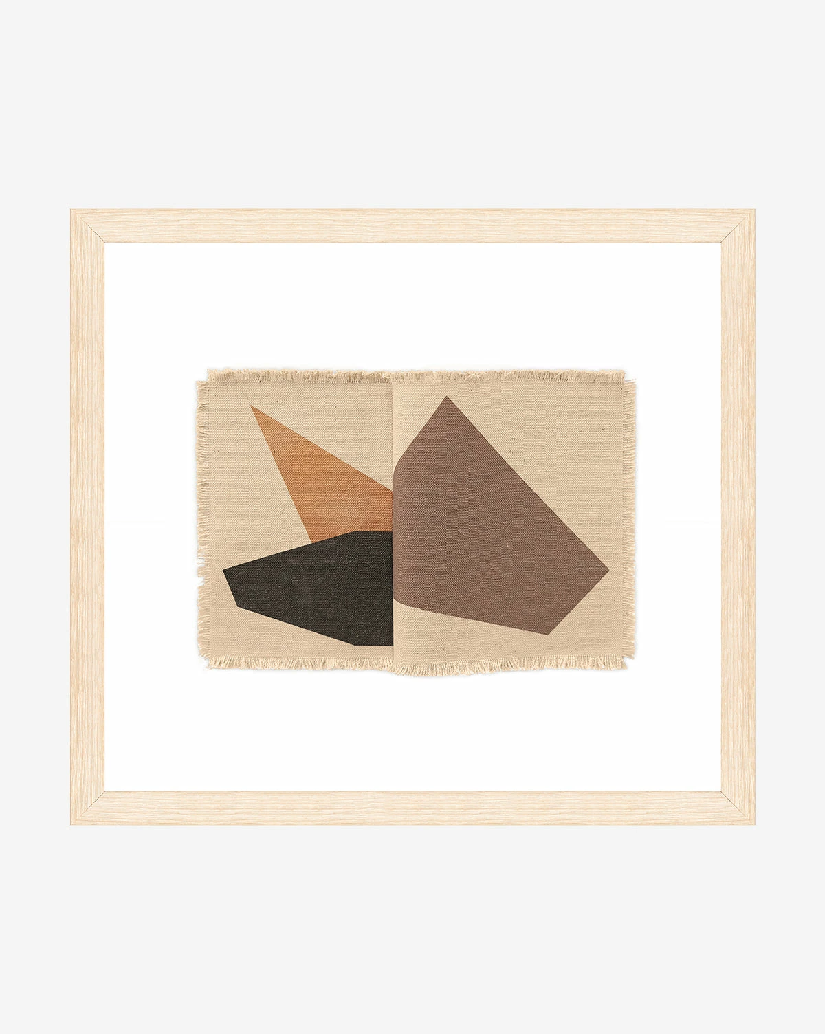 Insight II uses layers of texture and contrast in tone to create a bold abstract piece. With a warm palette and unique materials, the piece is framed in natural wood, bringing a museum-quality feel to your spaces.