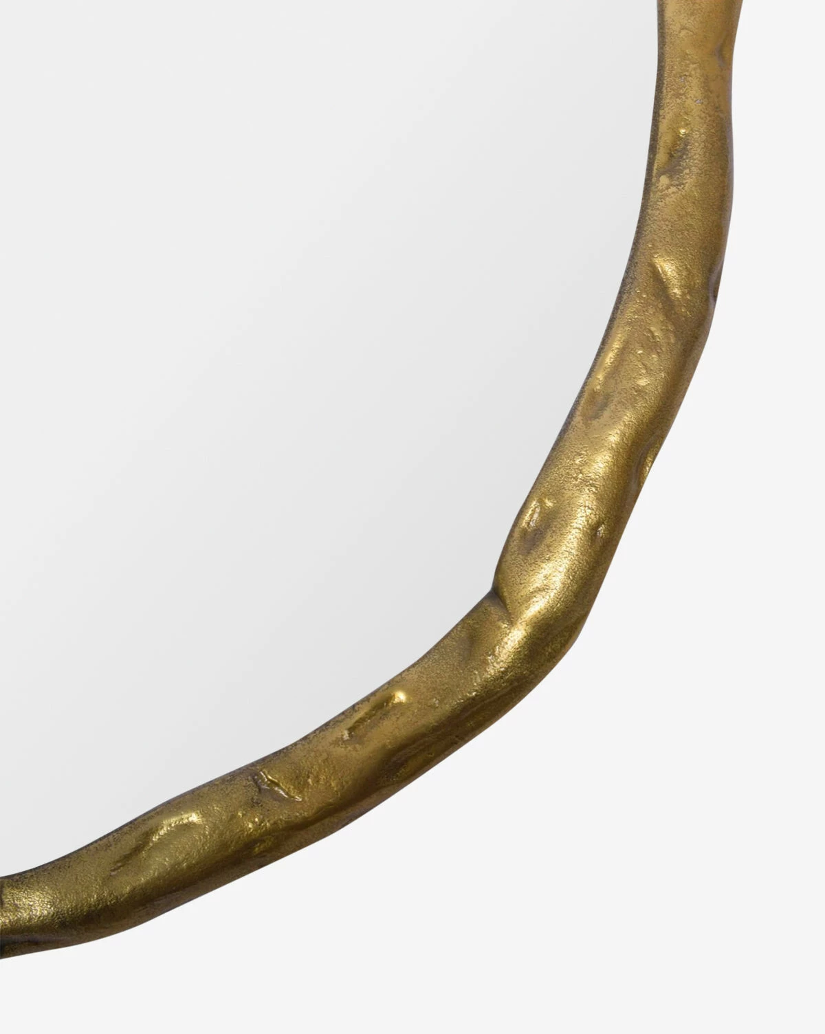 The Keira Round Mirror brings movement and antique-inspired detail to your space. Crafted from textured metal with a gold finish, the wall mirror makes a subtle statement whether styled above a console or bedroom dresser.
