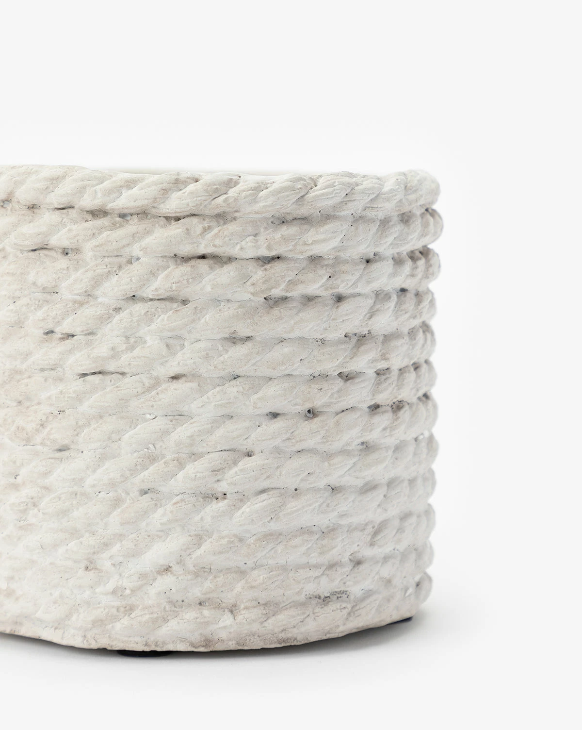 The Koa Cement Planter features a woven texture made of 100% cement in a gray finish. Its design brings subtle dimension to your styling, indoors or out, and is the perfect accent for your favorite greenery.