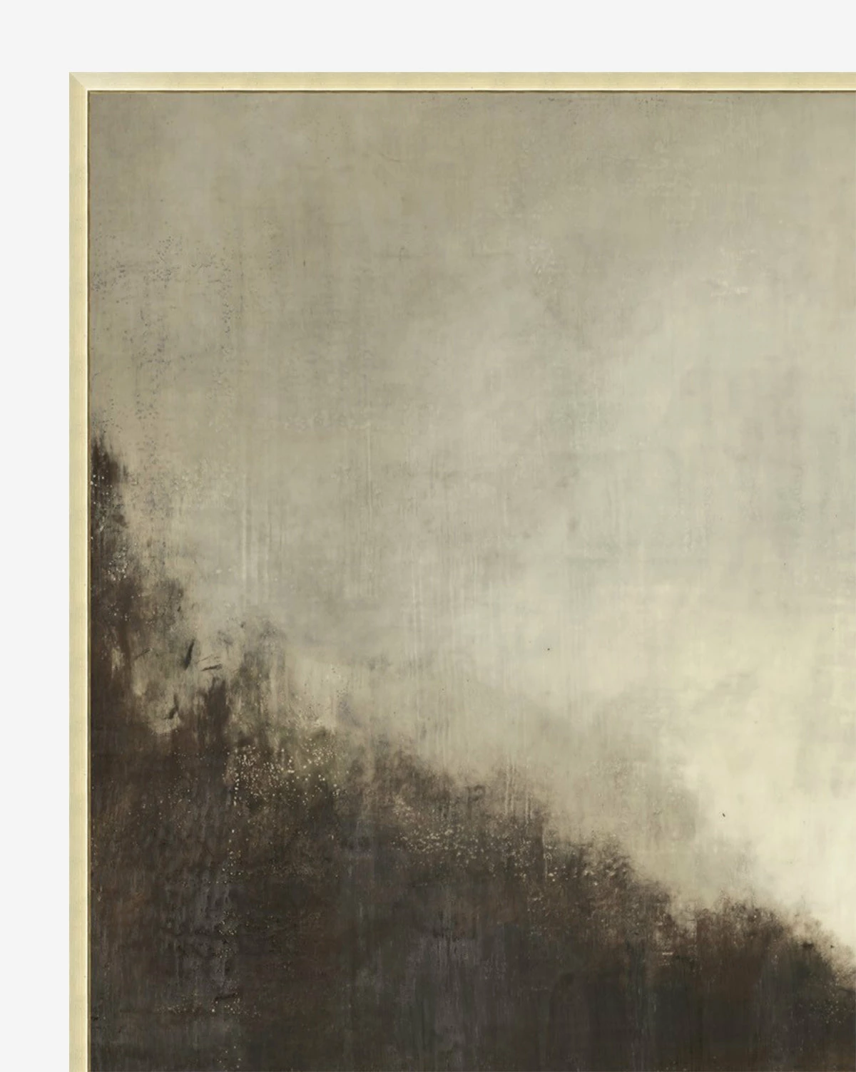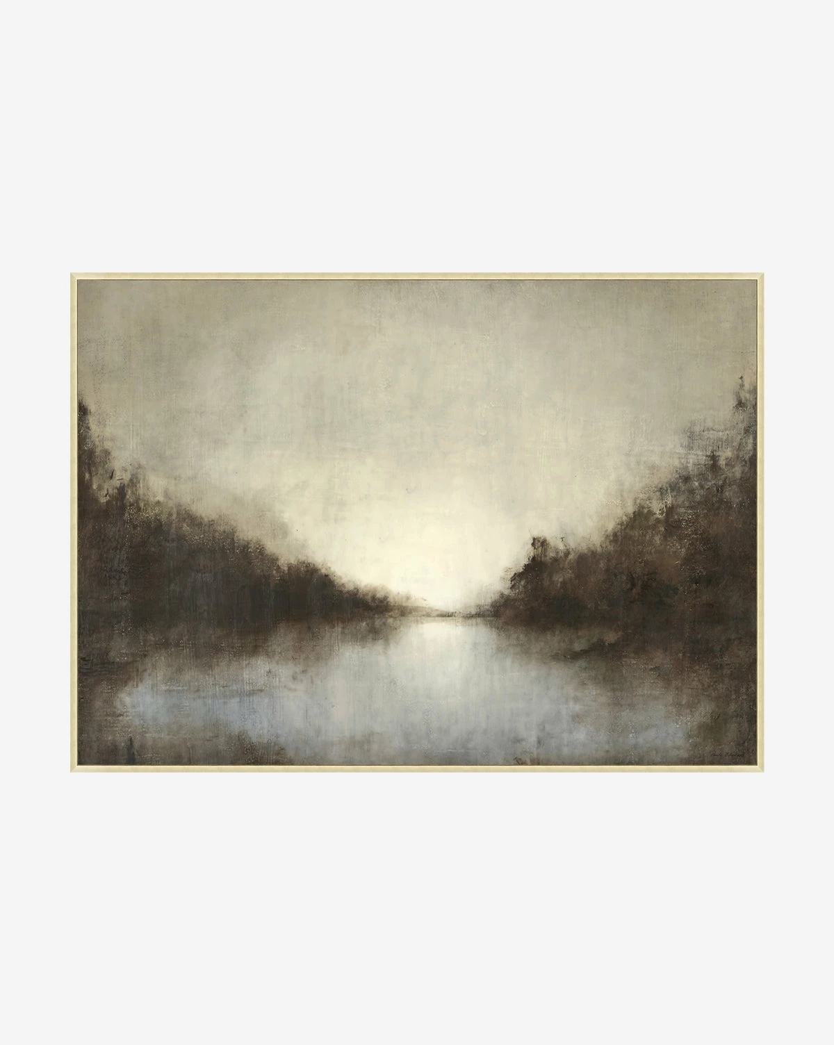 With an intentionally mystical quality, Lake Dream uses indistinguishable brush strokes to create a hazy feel. Its composition directs the eye into the piece, endearing the viewer with its deep palette of browns and cream. Produced with museum quality materials in a large scale, Lake Dream is an intentional way to fill space with a contemplative touch.