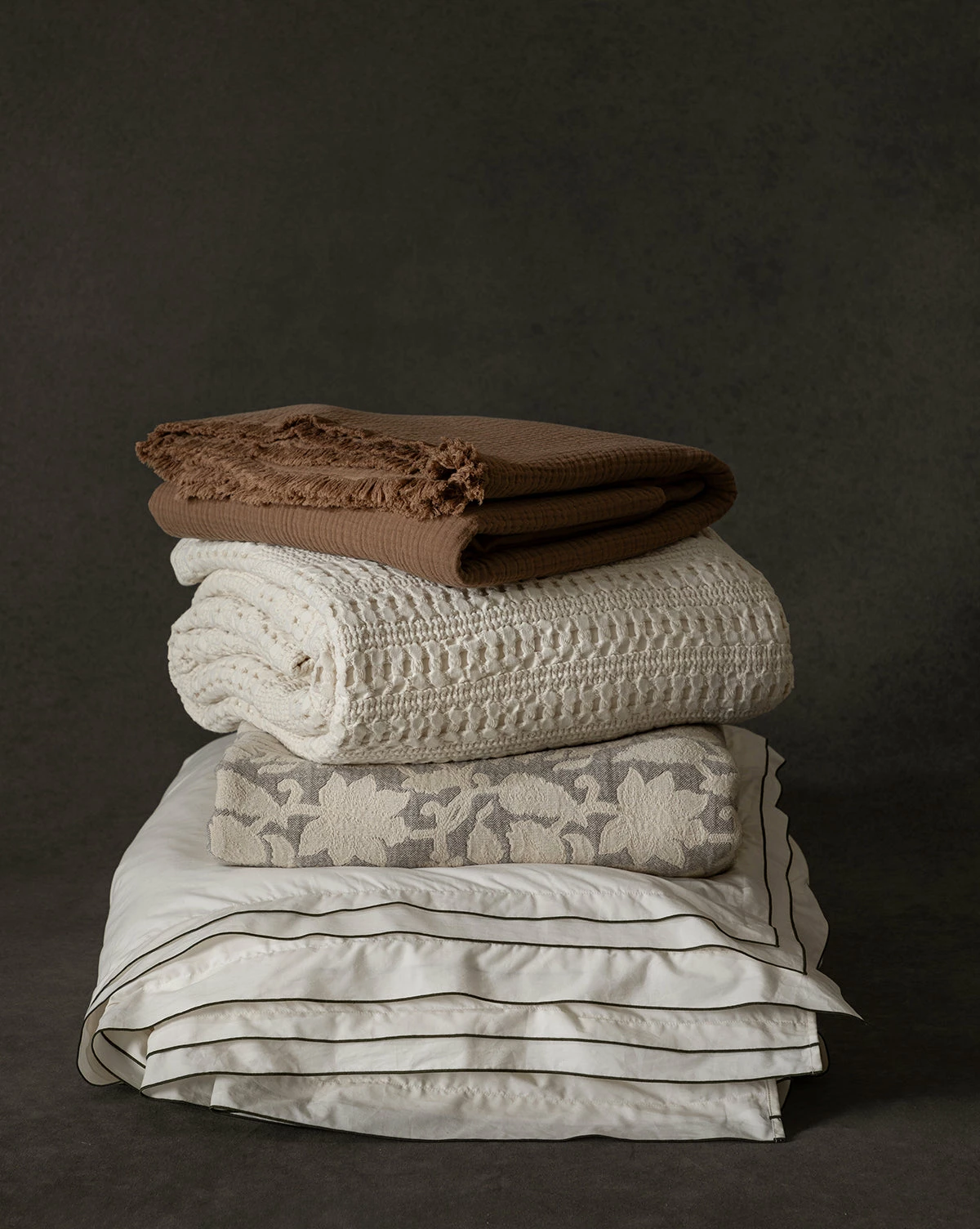 With a warm brown tone and subtle fringe, the Marinella Oversized Waffle Throw is cozy and versatile. The throw features a waffle weave texture, adding an interesting element to bedding layering or sofa styling. Designed specifically for comfort, the throw is made from 100% cotton.
