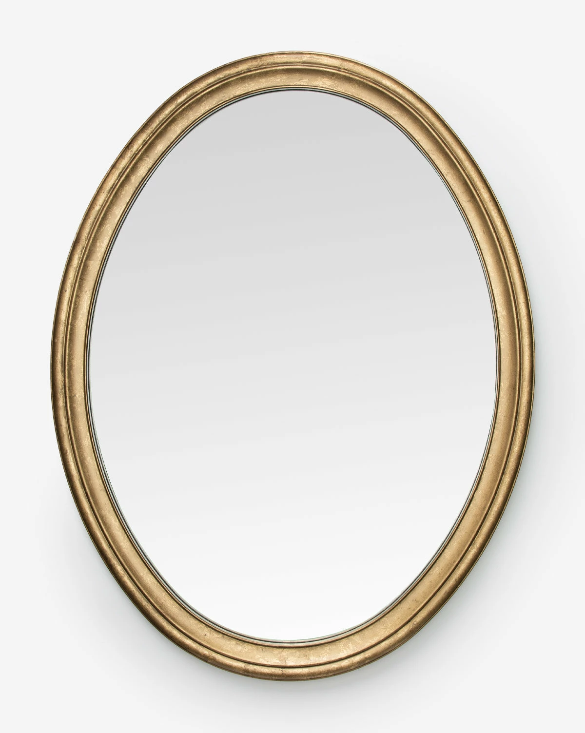 Designed with an oval frame in a traditional style, our Mona Oval Mirror has a bold presence that brings dimension to your space. Its gold leaf finish brings a warm and vintage feel to your decor and its simple shape allows for versatility in its styling.