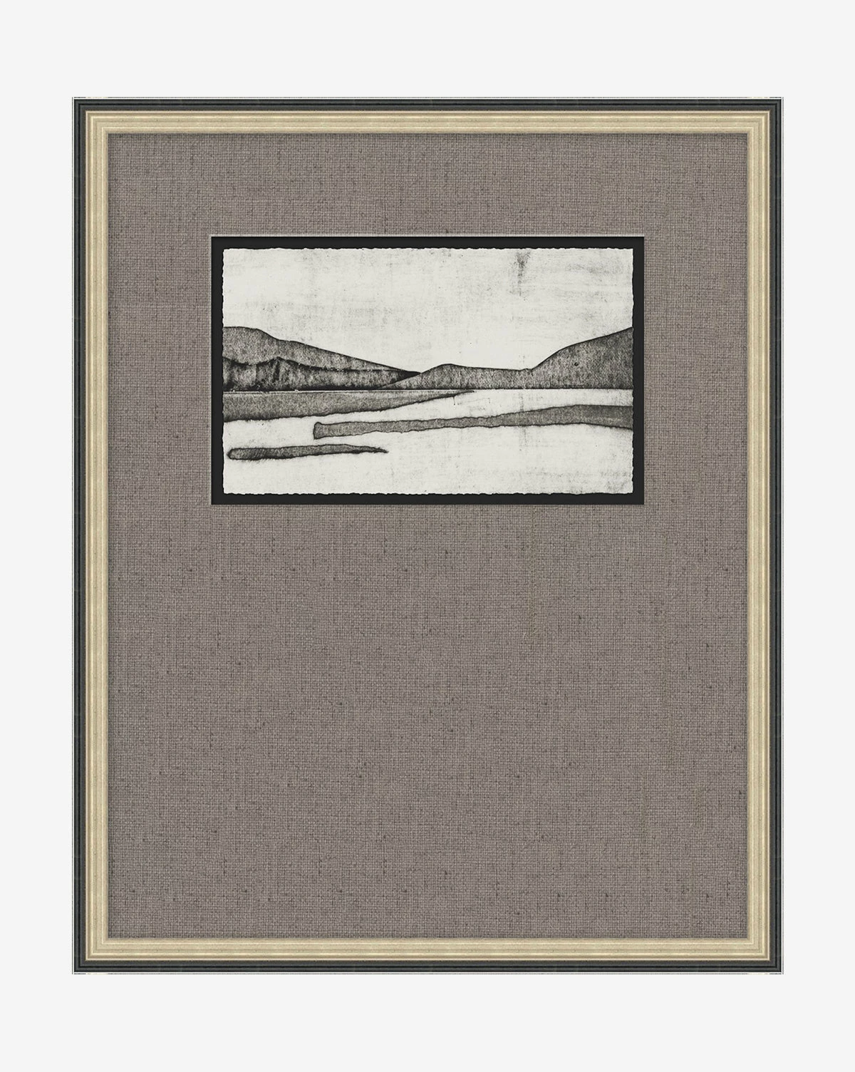 Tonal hues combine with intricate details to create this serene Mountain Lake scene. Differing depths bring dimension to this piece, while a large, hand-wrapped mat encloses the design finished with a two-tone frame.