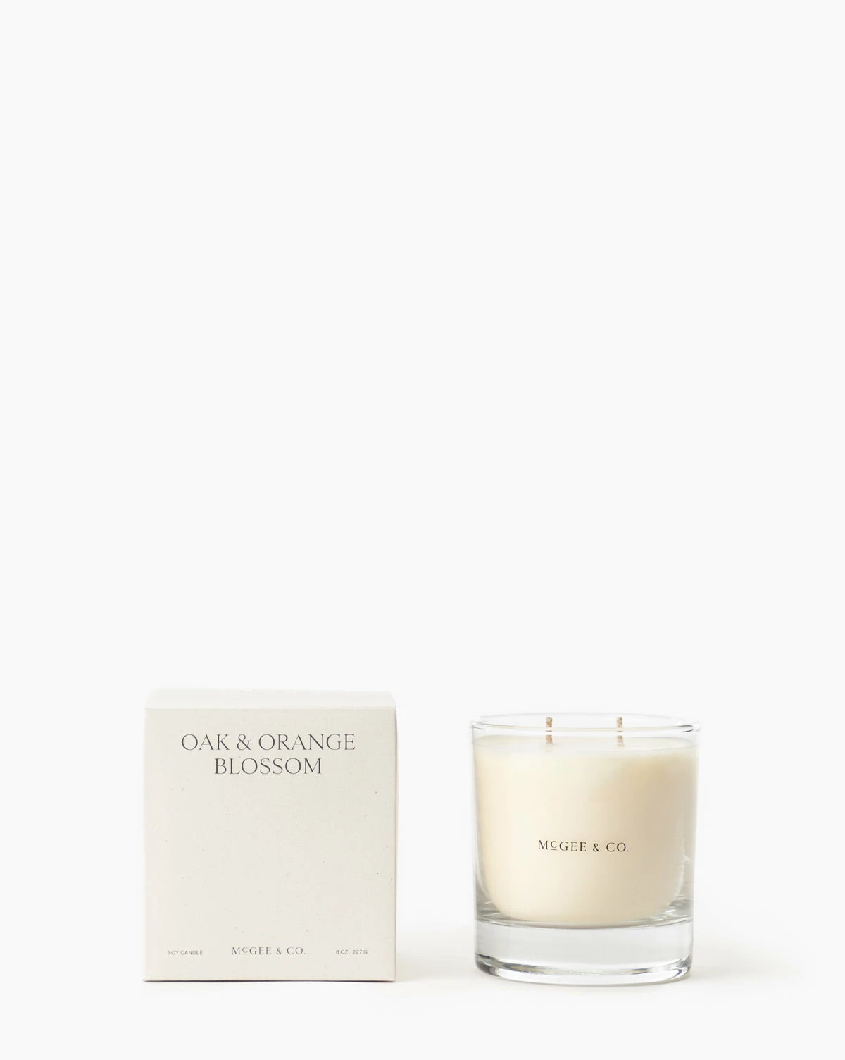 Hand-poured and labeled by artisans in small batches, the Oak & Orange Blossom Candle was thoughtfully created to bring a refreshing citrus and floral aroma to your home. Curated and developed by us, the candle has top notes of Valencia orange and peppercorn, blending jasmine and clove with oak and musk undertones.
