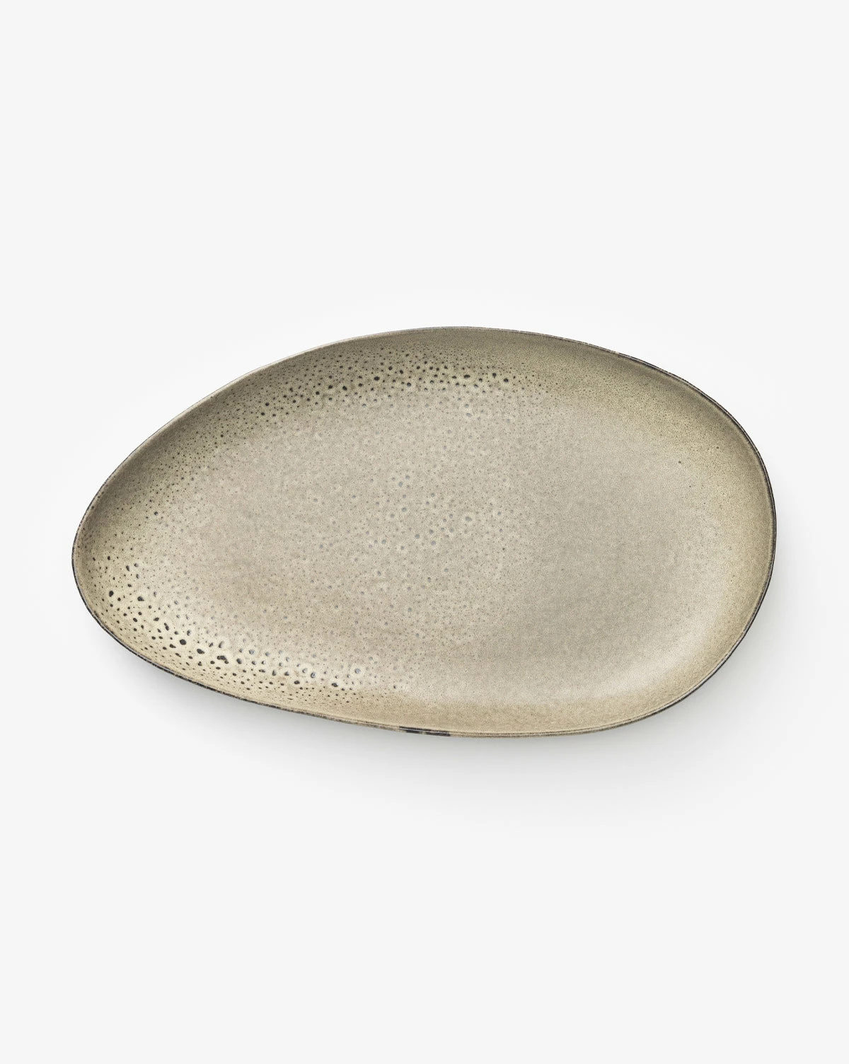 The traditional serving tray is given delicate nuance in the Oyster Oval Tray. The tray’s form is inspired by an oyster shell and finished in a nature-inspired glaze. Bringing a subtly organic feel to your tabletop, the oval tray is a hosting staple.