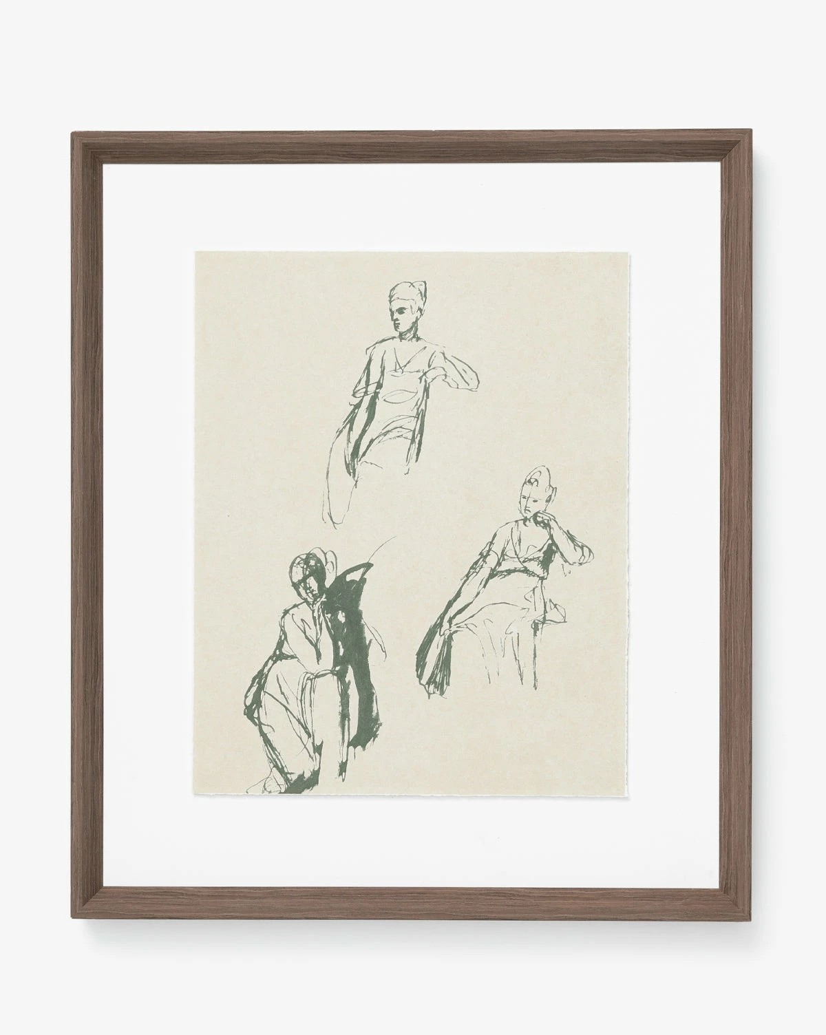 With delicate brush strokes and a sketch-like feel, Portrait Views shows the beauty of art in progress. With a wood frame in a walnut finish, the giclee print on watercolor paper is hand deckled and floated on a mat.