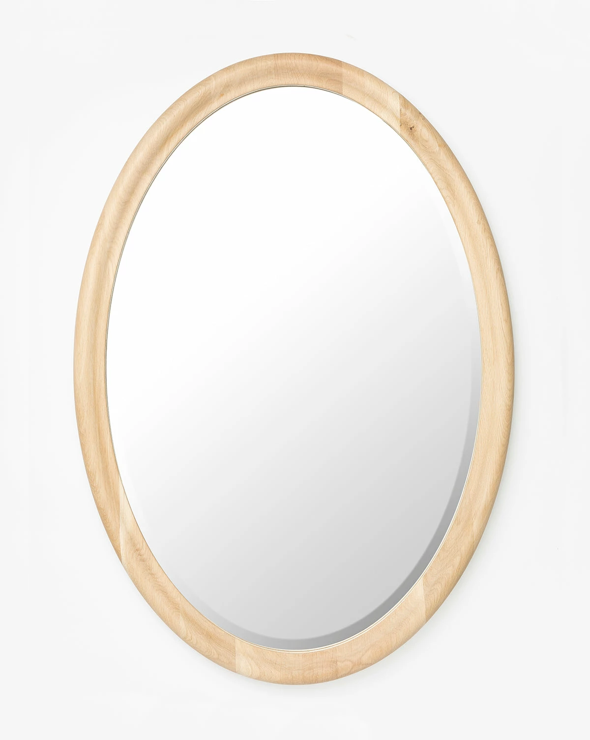 With softly rounded edges and a frame of natural oak, the Reta Oval Wood Mirror has a gentle yet pronounced presence that gives any space a touch of light and dimension. Its rounded edges and neutral finish emphasize its romantic feel, effortlessly creating a subdued statement in the home.