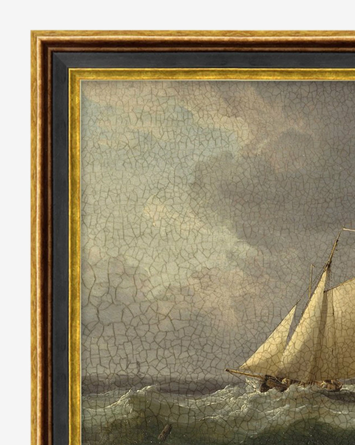 With a weathered look, the Seafarer piece brings an old-world feel to your space. On the edge of a storm, the moody coloring and stormy sea contrast with the blue skies peeking through the clouds.