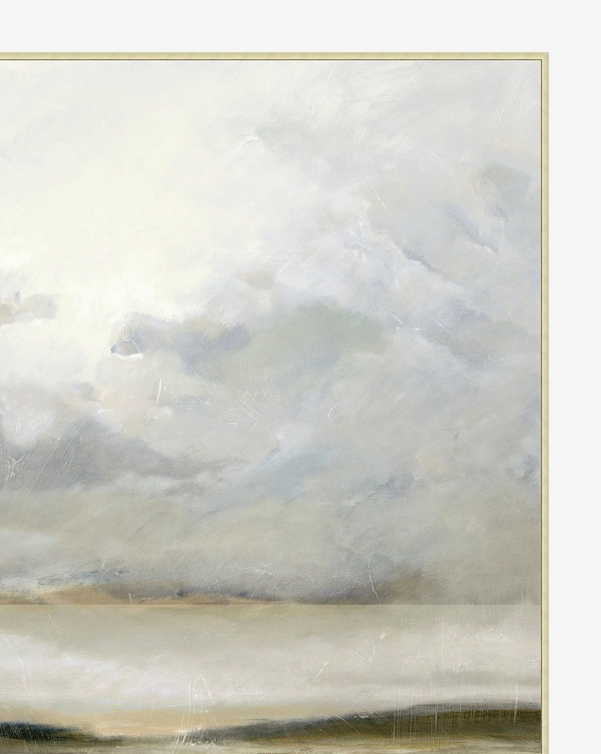 With moody, muted hues, the Southern Wetland piece depicts the ocean tide on a cloudy day. Styled as part of your entryway vignette, this artist-enhanced canvas brings an added layer of texture to your home design.