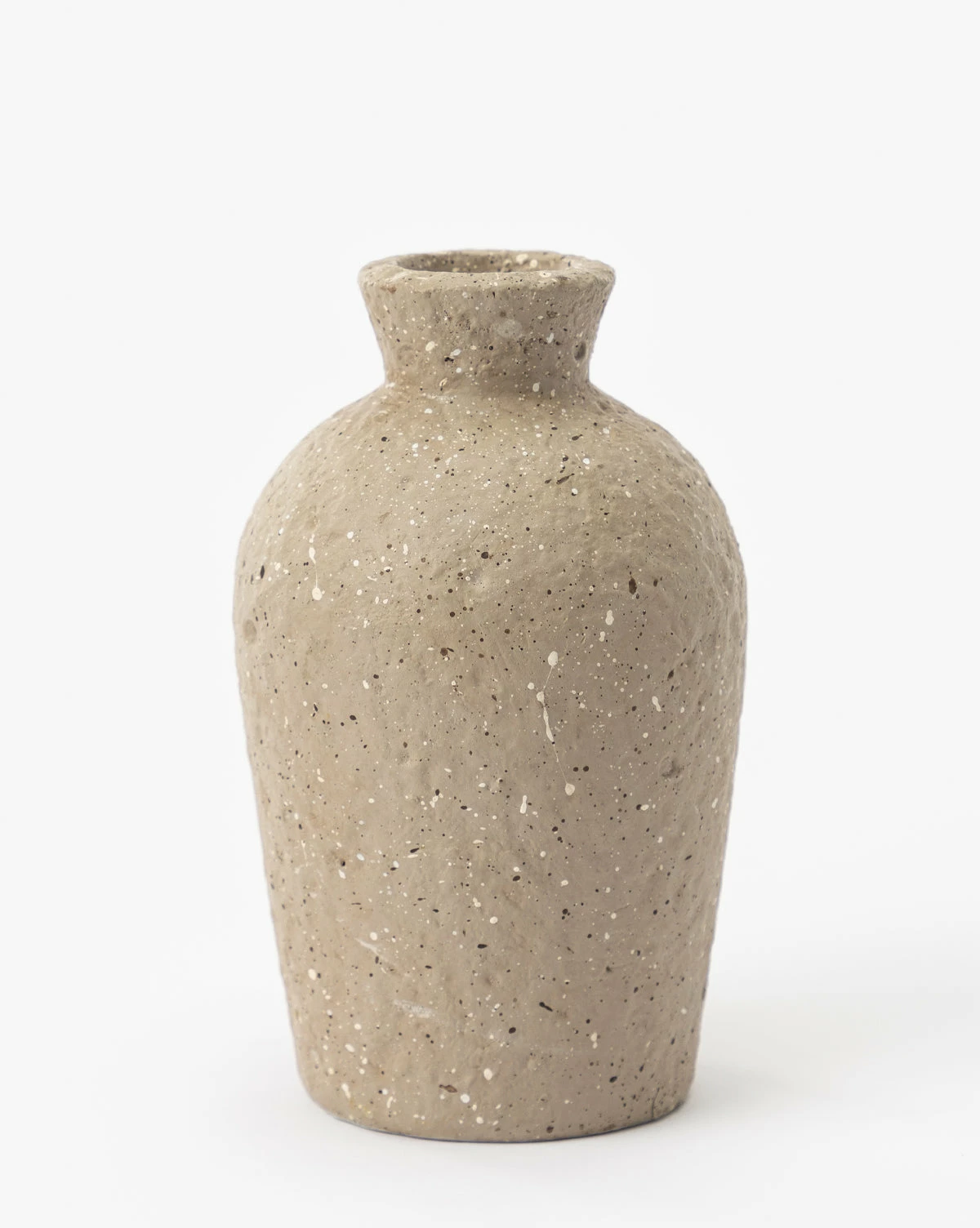 The Thalia Bud Vases have an antique and rustic feel that highlights their craftsmanship and materials. These vases are handmade with terracotta clay, bringing texture and neutral earthy tones to your built-ins or coffee table vignettes.