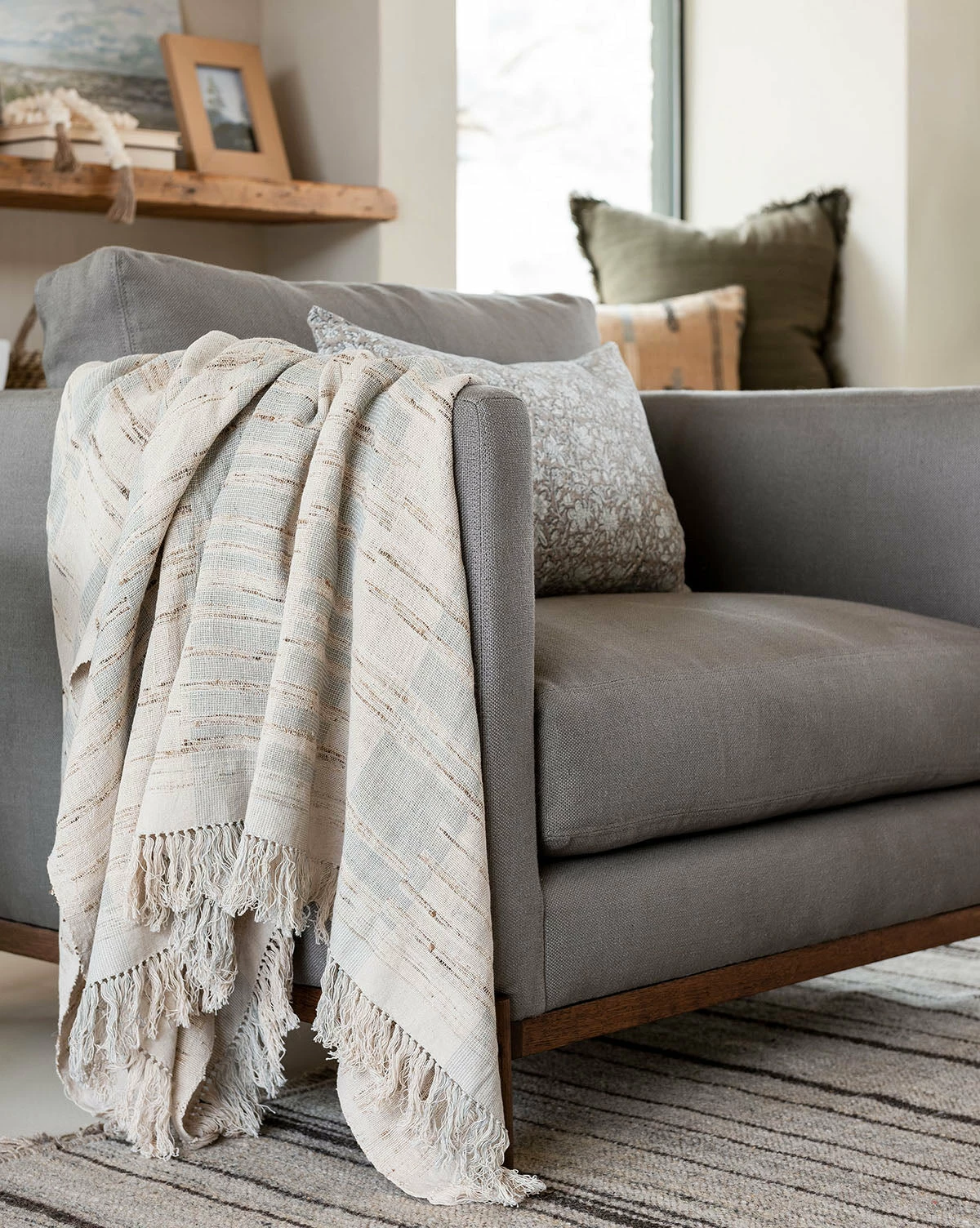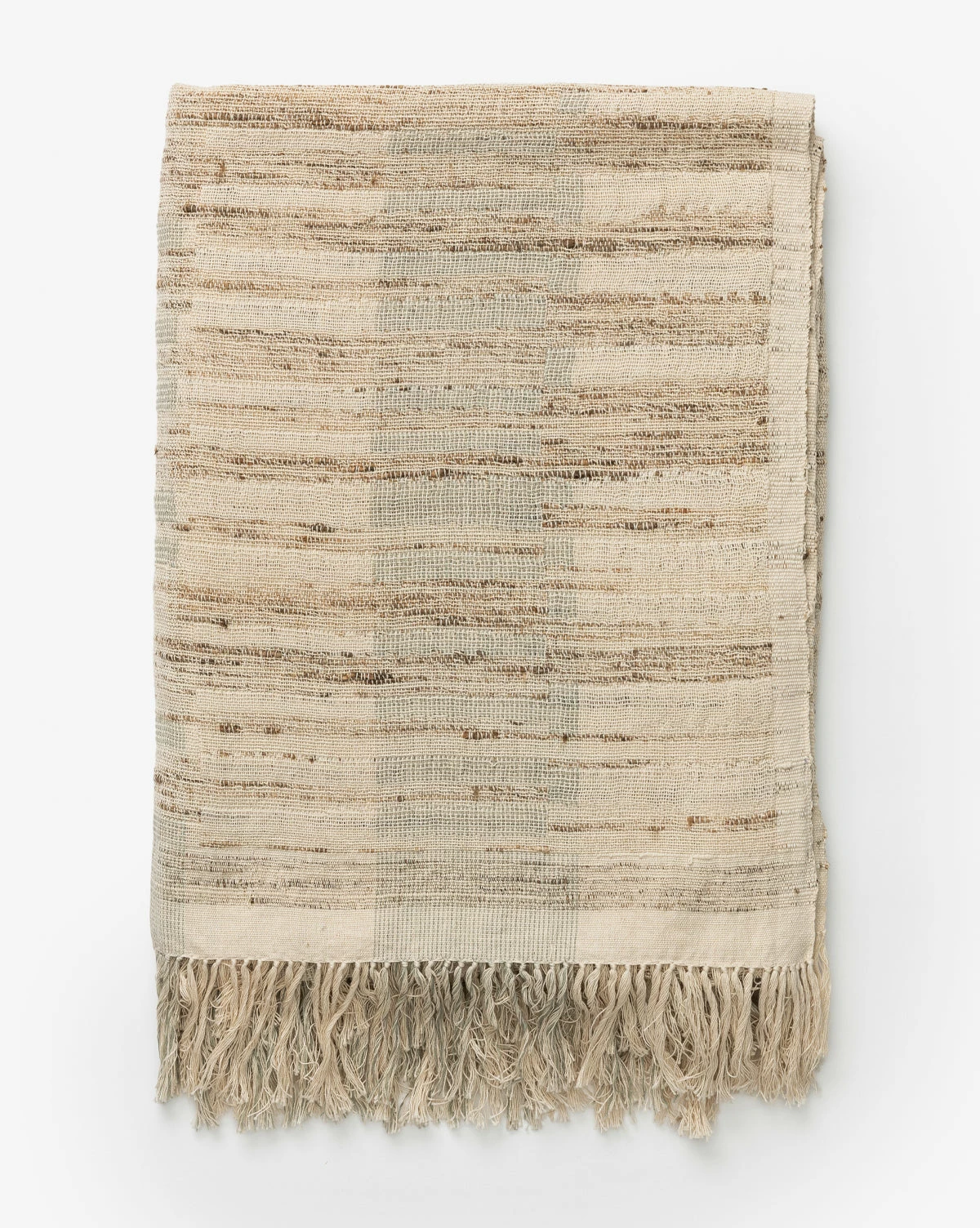 Crafted from a sophisticated blend of cotton and raw silk, this throw is both beautiful and functional. Draped over a sofa for an added layer of texture, its simple color palette of warm and cool tones finishes off your space with an effortlessly cool look and feel.