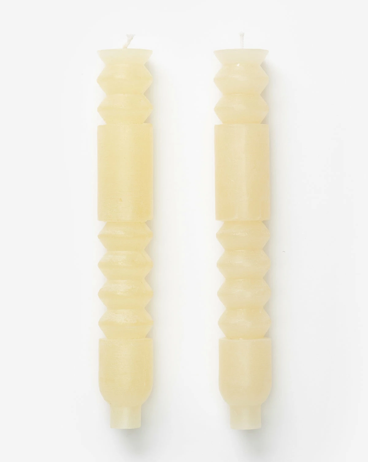 Neutral and shapely, the Totem Taper Candles are a timeless statement for your table or entryway. The combination of the stacked simple shapes adds dimension to a candle display or vignette.