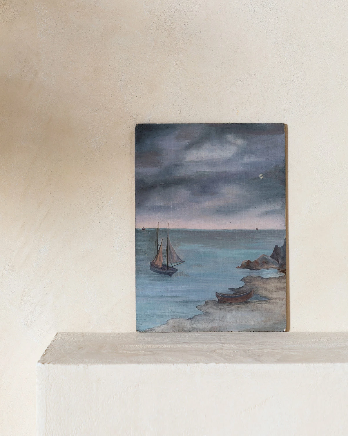 With cool blue tones, the Vintage Sailboat Oil Painting is dreamy and mysterious, with a composition that allows its brushwork to shine. As part of our Vintage Collection, this vintage artwork was hand-selected by our team for the unique character, heirloom quality, and beauty it will add to the home.