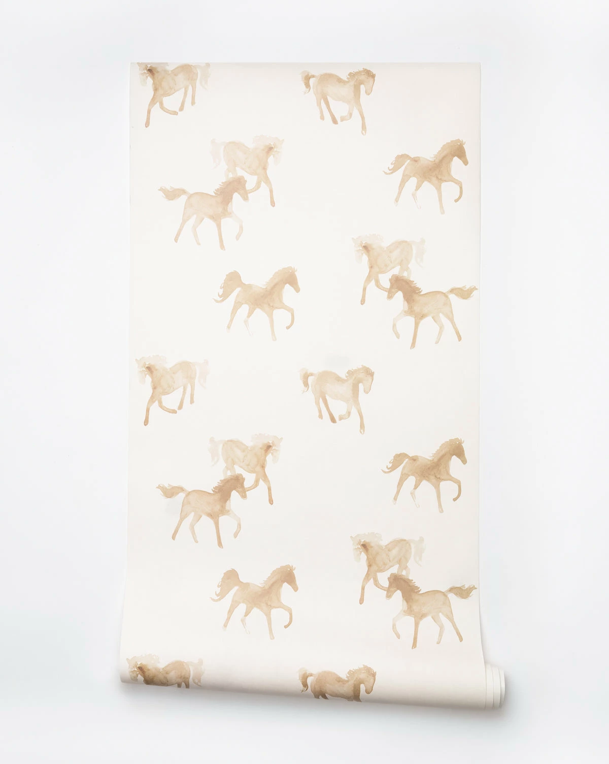 Beautifully designed, the Watercolor Horses Wallpaper uses nuanced shades of warm taupe to create interest and depth in simple forms. The galloping horse figures bring motion and direction to the wallpaper, and its delightfully playful feel lends warmth and imagination to your little ones’ bedrooms.