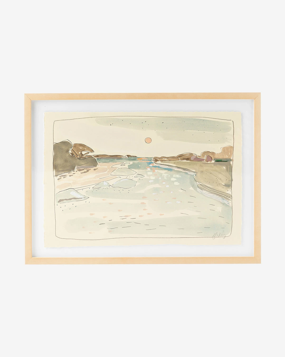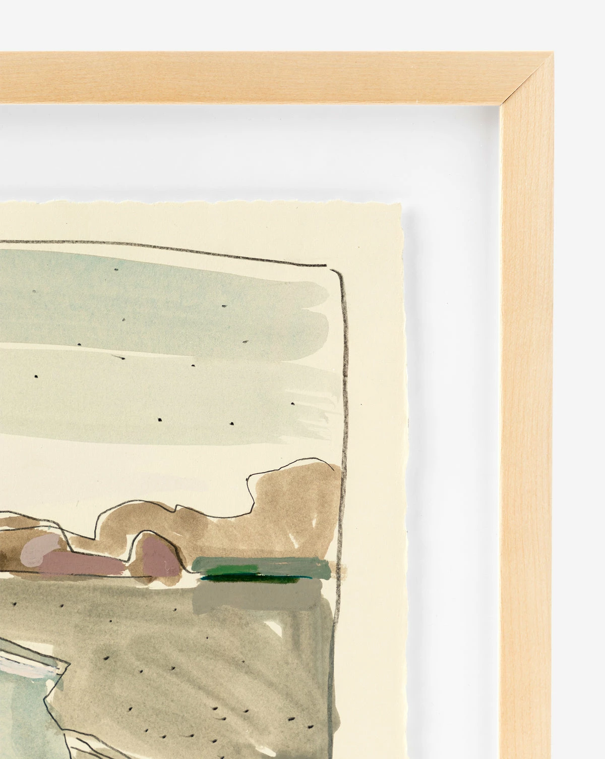 Taken from the sketchbook of artist Blakely Little, this exclusive original is painted in acrylic, gouache, and pastel and floated in a natural wood frame. Waterside 10 has a playful tone that fosters connection between the artwork and viewer, creating an heirloom-quality piece that is as timeless as it is endearing.